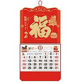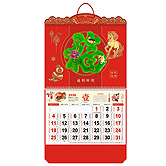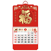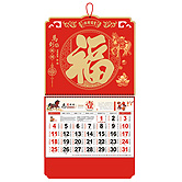 • 特度對(duì)開中國紅金雕窗花掛歷